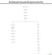 The Kholokoe tribe claims lineage from the Ba-Hurutshe clan, which was formed following the death of Morolong's 4th-generation great-grandson Malope of Masilo in the 14th century. The leadership crisis that resulted from Malope's death led to the formation of the Ba-Hurutshe and Ba-Kwena clans, upon the tribe got split between the daughter in the main house and the son Kwena in the 2nd house which resulted in followers of Mohurutshe called Bahurutshe and followers of Kwena as Bakwena, these are the children of Malope son of Masilo of Melore of Mhete. Malope from his father, Masilo,inherited the tribe as Baphofung confederation with Phofu as their totem only to split between his children being Mohurutshe and Kwena after his death.In their split later some Bahurutshe adopted Tshwene as new totem whereas others remain with Phofu while Bakwena discarded Phofu and adopted Kwena.