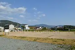 - In the Tsuji/Torii-mae area, a 2 × 3 m long digout pillar building and a row of fences running east–west to the south of it have been found; in the Ota Minami Tobizuka area, the remains of a collapsed house have been found; and in the Makinochi Ietsura area, a small 1 × 1 m long house and a 2 × 2 m long building with full columns have been found. In addition, 17 dugout pillar buildings have been found in the Ota Meguri area, and pit dwelling remains have been found in the Higashida Kakinoki and Ota Tobizuka areas.