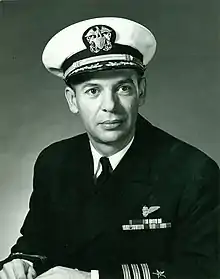 - ↑ National Personnel Records Center, FOI request 1-7062411857, 1/21/2010; Branches of Service: USN/USNR; Dates of Service: Enlisted Service 2/22/1943-3/4/1946, Reserves 3/5/1946-9/10/1950, Officer Service 9/11/1950-12/26/1955, Reserves 12/27/1955-7/1/1973; Rank/Grade: Captain/06; Place of Burial: Arlington National Cemetery.