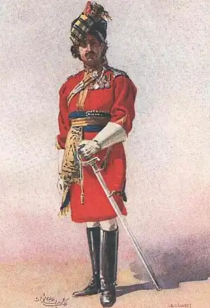 Khan served in the Somaliland War of 1902–1904, receiving the Jidballi medal and clasp, the British expedition to Tibet of 1903-1904 (for which he was Mentioned in Despatches[3]), the European theatre of the Great War between 1914 and 1915 (during which he was Mentioned in Despatches[4][5] a further six times), and then in the Third Anglo-Afghan War. He was attached to the 18th King George's Own Lancers and later the 19th King George's Own Lancers.[2]