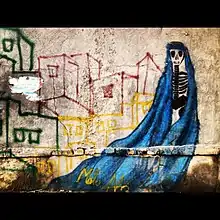 Malina Suliman (born 1990) is an Afghan graffiti artist, metalworker and painter. She was born in Kabul. As a child, she and her family were forced to flee her home province to live in Kandahar, Afghanistan. Her work is considered to challenge traditional Muslim culture like the burqa. According to Suliman, "The burqa is a way of controlling, but in the name of respect. Every culture or religion gives a different name for the burqa. It is honor, culture, and religion. Really, it just controls the woman and keeps her inside." Malina's work has gained the attention of the Taliban and traditional Muslims, resulting in having received threats from the Taliban towards Suliman and her family.[2] The artist was subject to physical threats, rocks have been thrown at her as she conducts her work.[3]