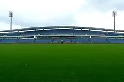 Malmö Stadion, often known simply as Stadion before the construction of the new Stadion between 2007 and 2009, is a multi-purpose stadium in Malmö, Sweden. As of 2015, it is the home of association football club IFK Malmö, presently of Division 2, and athletics club MAI.[1] The stadium served as the home ground for Malmö FF, an association football team in Sweden's top flight, Allsvenskan, from its opening in 1958 until 2009, when the club moved to the newly constructed Stadion, built beside Malmö Stadion, in 2009. Malmö FF still use the stadium for training purposes and youth matches. Besides being used for sports, the stadium has also hosted various concerts and other events. The ground's record attendance, 30,953, was set in the first match played at the ground, a 1958 FIFA World Cup match between Argentina and West Germany.[2]