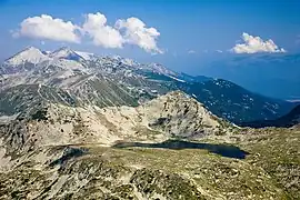 Malokamenishki Lakes (Bulgarian: Малокаменишки езера), also known as Belemetski Lakes (Белеметски езера),[1][2] are a group of 34 glacial lakes situated southwest of the main ridge of Pirin mountain range in Bulgaria. They are the source area of the river Mozgovitsa, one of the tributaries of the Sandanska Bistritsa of the Struma river basin.[2] The lake group is located in the Belemeto cirque, flanked by the main mountain ridge and the secondary ridges of Kamenitsa and Mozgovitsa, crowned by the summits of Kamenitsa Peak (2,822 m), Kralev Dvor (2,680 m), Momin Dvor (2,723 m) and Valyavishki Chukar (2,664 m).[1]