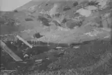 In 1874, a seam of low grade bituminous coal was found in upper Malpaso Canyon.[10] On September 6, 1888, shortly after ownership of the Rancho San Jose y Sur Chiquito was resolved by a court, almost all of the claimants banded together to form the Carmelo Land and Coal Company.[11][12] A mine was dug into the mountain on the north bank of Malpaso Creek and the coal was transported on ore carts via a tramway to Coal Chute Point, opposite the Chinese settlement at Whaler's Cove on Point Lobos. The deep water allowed the workers to use the chute to deliver the coal directly to coastal steamers.[11][12]