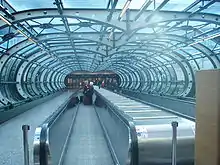 In December 2016 a 3.4-kilometre (2.1 mi) extension of the line from Terminal 1 to Terminal 2 opened.[3] The new Malpensa Terminal 2 railway station is 200 metres north of the T2 arrivals hall, that is accessed by an outdoor covered walkway.[4][5]