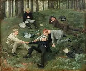 He was awarded the Neuhausenske Prize in 1883. Combining his own resources with a scholarship from the academy, he was able to make study tours to Germany, the Netherlands, Belgium, France, Italy and Greece; spending most of the years 1887–1889 in travelling.[2]