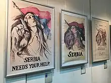 She also created the well known poster Serbia needs your help, based on the Miloje P. Igrutinović's photo of dead Serbian soldiers who had died of hunger and exhaustion on the Greek island of Vido. She made the soldier "live" on the poster and later, as a sort of an artistic installation, posted the soldier's head on the bronze statue of the Saint Francis of Assisi in front of the Mayo Clinic in Rochester, Minnesota.[21][22] She published her impressions about her visit in the chapter "Hunger in the Balkans" of her book Heads and Tales.[23]