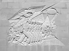 In 1948, Hoffman created relief sculptures for the walls of the American World War II Memorial for the Epinal American Cemetery and Memorial in Vosges, France.[33] It is on the site of the Battle of the Bulge (1944). There are 5,255 American soldiers buried in the cemetery.[26]