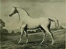 He was sold to and raced for Lord Grosvenor winning the King's Plate and Jockey Club Plate when he was just seven years old. On top of that, he had 11 wins, beating some of the finest horses of his time, including Florizel, Trentham and Comus.[2] He was also noted as a fine trotter and speed in harness racing. Later, Mambrino was retired to Oxford Stud, where he sired hunters, coach horses, road horses, and a couple of runners and broodmares. His most notable is Messenger, who was exported to North America, becoming a foundation sire of the Standardbred harness racing breed. Messenger was also important in the foundation of English Coach horses.
