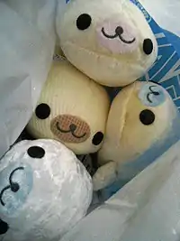 Mamegoma (まめゴマ) is a series of seal characters created by the Japanese company San-X. The prefix mame, meaning bean in Japanese, is used to refer to miniature versions of things; the suffix goma is an abbreviation of gomafuazarashi, or sesame seed-mottled seal, which is the Japanese name for the spotted seal.