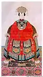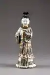 Wrap-around skirt artifacts worn by Chinese women, known under the generic term qun, appeared as early as the Zhou and Han dynasties.[3][16]: 144 Pleated skirts also appeared early on in China; according to the popular story, in the Han dynasty, pleated skirts became in vogue as women imitated the ripped skirt of Zhao Feiyan (? – 1 BC), a legendary dancer who later became an empress,[20] who had her skirt ripped when she was saved from a fall by Feng Wufang.[21]: 165 The term Mamianqun first appeared in the "History of the Ming Palace": "The drag and drop, the rear placket is continuous, and the two sides have swings, the front placket is two sections, and the bottom has horse face pleats, which rise to both sides. "But the history of the Mamianqun can be traced back to the Song Dynasty, because the skirt of the Song Dynasty already had the Mamian's shape of the Mamianqun.[22] However, the prototypes of the mamianqun originated in the Song (960 –1279 AD) and Liao dynasties (916 – 1125 AD).[5] The mamianqun experienced several changes of style, colours, fabric materials, and patterns over the dynasties.[5] The tailoring of the side panels, construction, and decoration of the skirt reflect changes in social and economic conditions during the time in which the skirts were made.[3]