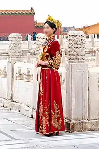- 1 2 3 4 5 6 "Xiu He Fu | Traditional Chinese Wedding Costume". Jin Weddings. Retrieved 2022-08-09.