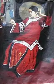 Mamianqun (simplified Chinese: 马面裙; traditional Chinese: 馬面裙; pinyin: mǎmiànqún; lit. 'horse face skirt'), is a type of traditional Chinese skirt. It is also known as mamianzhequn (simplified Chinese: 马面褶裙; traditional Chinese: 馬面褶裙; lit. 'horse-face pleated skirt'), but is sometimes simply referred as 'apron' (Chinese: 围裙; pinyin: wéiqún; lit. 'apron'), a generic term in English to refer to any Chinese-style skirt, or 'paired apron' in English although they are not aprons as defined in the dictionary. The Mamianqun is a type of qun (Chinese: 裙; pinyin: qún; lit. 'skirt') a traditional Chinese skirt worn by the Han Chinese women as a lower garment item in Hanfu[1][2]: 54 [3] and is one of the main representative styles of ancient Chinese-style skirts.[4] It originated in the Song and Liao dynasties and became popular due to its functionality and its aesthetics style.[5] It continued to be worn in the Yuan,[3] Ming, and Qing dynasties where it was a typical style of skirt for women[6] and was favoured for its unique aesthetic style and functionality.[5] Following the fall of the Qing dynasty, the mamianqun continued to be worn in the Republic of China, and only disappeared in the 1920s and 1930s [5] following the increased popularity of the cheongsam.[7] As a type of xifu, Chinese opera costumes, the mamianqun maintains its long tradition and continues to be worn nowadays.[2]: 54 In the 21st century, the mamianqun regained popularity with the emergence of the Hanfu movement.[8][9] The mamianqun has experienced various fashion changes throughout history.[10] It was typically paired with ku, Chinese trousers and Chinese jackets,[10][3][11] typically either the ao or gua.