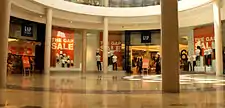 Mamilla Mall contains 300,000 square feet (28,000 m2) of retail space.[28] Its 140 stores appeal to all economic strata, from high-end international chains Tommy Hilfiger and Abercrombie & Fitch; to Israeli designer boutiques such as Castro, Dorin Frankfurt, and Ronen Chen; to mid-range restaurants and a "supermarket-style" pharmacy.[2][18] There are numerous chain stores selling fashions and cosmetics, as well as gift and souvenir stores.[29] The Gap store, which opened in the mall in August 2009, is the chain's first store in Israel.[30] Among the cafes are branches of Café Rimon, Aroma Espresso Bar, and Spaghettim.[31]