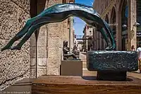 To appeal to its broad consumer base, the Alrov Group presents changing exhibits of sculpture and art along the promenade.[6][34][35] All the pieces are by local artists, and most are for sale.[19][36] During the summer and Jewish holidays, the mall hosts free concerts, street performances, folk dancing, and family activities.[6][34][35][37][38] During Hanukkah, a Chabad candle-lighting ceremony takes place here nightly.[5]