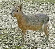 This is a list of the native wild mammal species recorded in South America. South America's terrestrial mammals fall into three distinct groups: "old-timers", African immigrants and recent North American immigrants. The marsupials and xenarthrans are "old-timers", their ancestors having been present on the continent since at least the very early Cenozoic Era. During the early Cenozoic, South America's only land connection was to Antarctica, so it was effectively cut off from most of the world; as the fragments of Gondwana continued to separate, this connection was lost, leaving South America an island continent. Caviomorph rodents and monkeys arrived as "waif dispersers" by rafting across the Atlantic from Africa in the Eocene epoch, 35 million or more years ago.[1][2][3] All the remaining nonflying mammals of South America are recent arrivals, having migrated from North America via Central America during the past seven million years as part of the Great American Interchange; this invasion, which peaked around three million years ago, was made possible when the formation of the volcanic Isthmus of Panama bridged North and South America. The newcomers out-competed and drove to extinction many mammals that had evolved during South America's long period of isolation, as well as some species from other classes.[4]