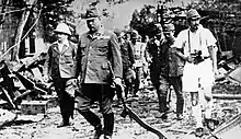 After the fall of Singapore, Shinozaki (right end) guided General Yamashita (2nd from left) to inspect battlefields of Singapore[14]