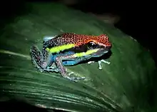 - ↑ Grant, T.; Frost, D. R.; Caldwell, J. P.; Gagliardo, R.; Haddad, C. F. B.; Kok, P. J. R.; Means, D. B.; Noonan, B. P.; Schargel, W. E. & Wheeler, W. C. (2006). "Phylogenetic systematics of dart-poison frogs and their relatives (Amphibia: Athesphatanura: Dendrobatidae)" (PDF). Bulletin of the American Museum of Natural History. American Museum of Natural History. 299: 1–262. doi:10.1206/0003-0090(2006)299[1:PSODFA]2.0.CO;2. S2CID 82263880.