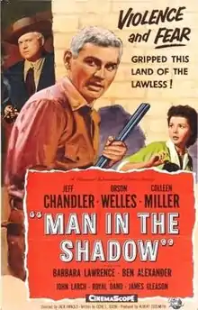 Man in the Shadow is a 1957 American CinemaScope crime Western film directed by Jack Arnold and starring Jeff Chandler, Orson Welles, Colleen Miller and Ben Alexander.