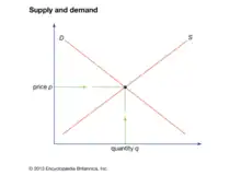 The principle uses the conjecture of supply and demand to set an accurate price for a good.[20] The aim of price theory is to allocate a price for a good such that the supply of a good is met with equal demand for the product.[20] If a manager sets the price of a good too high, the consumer may think it is not worth the cost and decide not to purchase the good, hence creating excess supply. The opposite occurs when the price is set too low, causing demand for a good to be greater than supply.[20]
