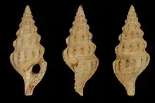 Shell of Mangelia halitropis (holotype at the Smithsonian Institution)