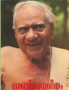 Mani Madhaveeyam (മാണി മാധവീയം in Malayalam) is a biographical book written on the life of Guru Māni Mādhava Chākyār (1989–1991), who was the greatest Kutiyattam-Chakyar Koothu (2000-year-old Sanskrit drama tradition of Kerala, India) exponent and Rasa-abhinaya (classical Indian style of acting according to Natya Shastra) maestro of modern times. The book is published by the Department of Cultural Affairs of Government of Kerala, India in May 1991. The author of the book is Das Bhargavinilayam[1]