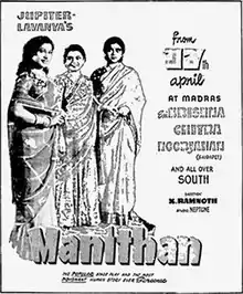 Manithan (transl. The Man) is a 1953 Indian Tamil-language drama film directed by K. Ramnoth. The film stars T. K. Shanmugam, T. K. Bhagavathi and Krishnakumari. It is based on the play Manushyan by Muthukulam Raghavan Pillai. The film was released on 13 April 1987.[1]