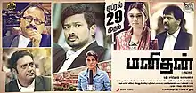 Throughout 2014, director I. Ahmed and producer-actor Udhayanidhi Stalin planned a film titled Idhayam Murali, which would also feature Hansika Motwani and Ashok Selvan.[1] However, the team were unable to begin production and decided to stall the venture, instead choosing to remake Subhash Kapoor's 2013 Hindi film, Jolly LLB.[2] Unlike the original film, which was a comedy drama, Manithan was made to be more serious and dramatic.[3] Hansika was retained as the heroine of the project with Prakash Raj and Radha Ravi added to the cast, and Santhosh Narayanan signed as the film's music composer.[4] Production for the film started in August 2015, with the film remaining untitled throughout production.[5] Vivek also joined the cast, while Aishwarya Rajesh was signed on to replace Akshara Gowda, after the makers had a change of heart about casting the actress.[6][7]