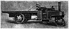 One of their notable inventions was the single-eccentric reversing gear. This compact device allowed the sequence of valve opening of a steam engine to be changed, both in terms of "cut-off" and "direction" without the need for link motion and all the associated levers. Around 1898 Mann and Charlesworth produced, on behalf of Philip Parmiter of Tisbury, an agricultural steam cart using the front end of a conventional traction engine and a roller at the rear.[4] This was one of the first practical self-powered load-carrying road vehicles. Mann realised the potential for this machine and went on to develop it into his "Patent Steam Cart" – to which the company title referred.