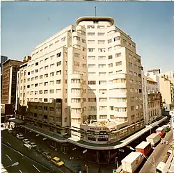 The building has 14 storeys and a distinctive appearance with sweeping curved corners addressing the corner of the plot. The ground floor was set aside for shops and businesses with the floors above providing exclusive residential apartments. It resembles many buildings in New York City built around the same time.[2][3]