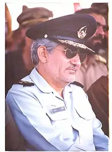 After serving his compulsory military service in the Army Artillery branch, he joined the Iranian Military Academy and entered the Imperial Iranian Air Force in 1965 in the Ground Force branch. In 1971 he was sent to United States to attend a course in Advanced Radar Control and Battle Management. Upon his return to Iran he was employed as a Radar Defence Control Officer. He implemented many innovative plans to improve radar and counterattack systems that was learnt from the U.S. Air Forces, which proved helpful in disabling offensive capacities of the Iraqi Air Force during the Iran-Iraq War. In 1983 Mansour Sattari was appointed Deputy Operations Officer for the Islamic Republic of Iran Air Force counterattack headquarters, and in 1985, as the Deputy Planning Officer of IRIAF. In 1986, after reaching the rank of Colonel, he was appointed the Commander-in-Chief of the Islamic Republic of Iran Air Force. He held this position until his death. On January 5, 1995 an Islamic Republic of Iran Air Force (IRIAF) Lockheed JetStar crashed near Isfahan during an emergency landing, killing all 12 on board including General Mansour Sattari, commander of the IRIAF. He was 46 years old.[3]