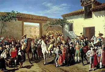In 1856, he won honorable mention at the first National Exhibition of Fine Arts for his painting of the picadors preparing their horses at the old bullring in Madrid (demolished in 1874), which incorporates portraits of many of the period's most popular bullfighters, including Paquiro.[2]