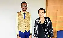 Manuel Ntumba pictured with the Director of the United Nations Office for Outer Space Affairs (UNOOSA) Ms. Simonetta Di Pippo in October 2021.