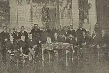 Simó's position towards the regime remained ambiguous and one scholar names him the leader of a local Valencian "grupo semicolaboracionista", dubbed also "grupo simonista".[116] On the one hand, it supported the idea of doing away with the corrupted restoration regime and saw the military as an agent of change; on the other, it was anxious to retain its own identity and not to melt down in broadly designed and amorphous institutions of primoriverismo.[117] Hence, though Simó spoke at rallies of Unión Patriótica,[118] he did not enter the organisation;[119] it was rather his son Manuel Simó Attard who did join[120] and remained active in the UP youth branch.[121]
