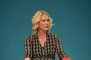 At an SPD convention in late 2015, Schwesig received 93 percent of members' ballots, the best result of any of the party leadership.[16] Shortly after, the party's board mandated Schwesig and Thomas Oppermann with the task of drafting an electoral program for the 2017 federal elections.[17]
