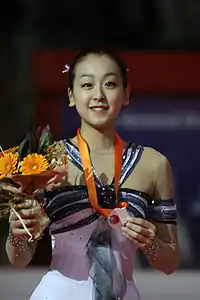 Mao Asada (浅田 真央, Asada Mao, born 25 September 1990) is a Japanese former competitive figure skater. She is the 2010 Olympic silver medalist, a three-time World champion (2008, 2010, 2014), a three-time Four Continents champion (2008, 2010, 2013), and a four-time Grand Prix Final champion (2005–06, 2008–09, 2012–13, 2013–14). She is the first female figure skater who has landed three triple Axel jumps in one competition, which she achieved at the 2010 Winter Olympics.