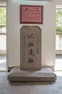 Tablet of Returning Blood with Blood- Promising to avenge his mother's death, Chiang Ching-Kuo had the words "以血洗血" ('wash away blood with blood') carved on a tablet