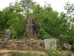 Three menhirs, commemorating the meeting of the three brothers – Okhe (meaning 'Tiger' representing all of the animal kingdom), Orah (meaning 'God' representing all of the supernatural world) and Omei (meaning 'mankind') who, in the Mao mythology, are said to have descended from a common mother. Two menhirs, representing Orah and Omei, stand upright on the eastern side with the third (representing Okhe) on the western side lies flat on the cairn, at Chazhilophi, south of Makhel or Makhrai Rabu,a Mao Naga village in Manipur state of India. Makhrai Rabu is also believed to be the ancestral village of the Nagas who first settled there after years of migration and before further migrating to their present areas of habitation.