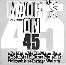 "Maoris on 45" is a 1982 novelty single by New Zealand group the Consorts, produced by Dalvanius Prime. Inspired by the Dutch hit single "Stars on 45" concept, the song was a Māori language medley of songs performed on the guitar, including "Pā Mai", "Me He Manu Rere", "Hoki Mai e Tama Mā", "E te Hokowhitu" and "Taringa Wairua". The song was a hit in New Zealand, reaching number four.