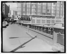 When it opened in 1947, the 12-story Mapes Hotel was the tallest building in Nevada until the 1956 opening of the Fremont Hotel and Casino in Las Vegas.[1] Owned by the Mapes family, the hotel quickly became, for most of the 1950s and 1960s, the premier hotel in Reno. Many celebrities of that era stayed there, including Marilyn Monroe, Montgomery Clift and Clark Gable during the filming of The Misfits; U.S. Senator Joseph McCarthy, who over a drink in the Lamplighter bar at the bottom floor of the hotel, admitted to a reporter that he did not have a list of communists in America (see Venona Project); U.S. President Harry Truman and many others. The Sky Room at the top of the Mapes was a famous nightclub and stage where many of the biggest singers and entertainers of the time such as Frank Sinatra, Jimmy Durante and Milton Berle performed; at one point, Sammy Davis, Jr. performed there but was prohibited from staying in the hotel due to segregation. During location shooting for the television series, Bonanza, many guest stars would reside at the Mapes. In 1959, Jack Carson appeared on Bonanza, while doing shows in the Sky Room. It was memorably showcased in a 1961 episode of Route 66, guest starring Walter Matthau. During the 1970s, brothel owner Joe Conforte paid a percentage to the Mapes Hotel bell men as they directed clients to his Mustang Ranch. It features prominently in the film California Split.