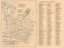 The earliest Hollywood star maps were created in the 1920s,[3][5] with some movie studios "producing their own maps with directions to their stars' homes, cultivating the idea of celebrity and encouraging fans to see them as icons".[5] A 1924 Los Angeles Evening Post-Record article describes, for example, how "tourists and residents who spend hours hunting for the homes of moving picture stars will be given an opportunity to view them from accurate information", from a map showing "homes of 65 stars in Los Angeles, Hollywood and Beverly Hills".[6] A noted 1926 map of celebrity homes produced by developed George E. Read had a different purpose, to promote the marketing of residential properties in the area by highlighting their proximity to the stars.[5]