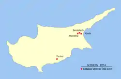 Locations of massacres against Turkish Cypriots in 1974
