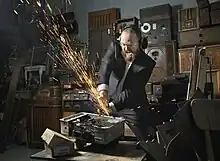 In 2010, Adornato's artwork took on a distinctively different look that tended towards "assemblage".[4] He began to work with antiquated materials from before the 1960s:[4] everything from reclaimed barn wood, to radios, typewriters, cameras, sewing machines, to vintage fur pelts, antlers, and World War II-era gas masks.[15] His hybrid assemblage/mash-up style continues to be prevalent in his current sculptural work.[4][14] Recent notable creations are the Hunting Dissent series, which was the subject of a conflict with a local eatery when Adornato spoke out against an alleged copy of his work.[16][17] The Hunting Dissent series, along with the dark-humored BlowUp Dolls, and the emerging train-derailment series Progress Derailed,[4] are among those shown in many non-traditional venues in Ottawa.[18]