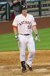 The Astros promoted Krauss to the major leagues on June 21, 2013.[10] Krauss had his first RBIs on a bases-loaded single in a 9–5 victory over the Texas Rangers, on July 6, 2013. Krauss hit his first home run on July 7, 2013 against Justin Grimm, in a 5–4 loss. Krauss played 52 games that season, finishing the year with a .209 batting average, 4 home runs and 13 runs batted in (RBI).[11]