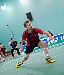 Marc Zwiebler (German pronunciation: [ˈmaʁk ˈtsviːblɐ]) (born 13 March 1984) is a badminton player from Germany.[1] His highest ranking is 10 in the world. He is a seven-time German national champion in men's singles. He won gold at the 2012 European Championships in Karlskrona over Henri Hurskainen 21–15, 21–13. 2010 he won bronze behind Peter Gade and Jan Ø. Jørgensen. By reaching the third round at the 2008 Olympics[3] and the final of 2009 Denmark Open, one of premier tournament competition series BWF World Superseries, Zwiebler is considered as Germany's top badminton player of all time.