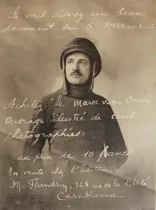 Marcelin Flandrin settled in Morocco in 1901, where he completed his military service as a volunteer in 1912. A photographer by profession, he served in the Service Photographique des Armées (fr), completing a series of reports during the Rif War. In World War I, he served in the French Air Force, finishing as an aerial observer sending aerial shots of battles.