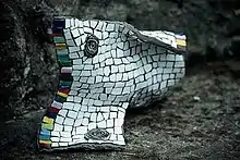 Marcelo de Melo has been living in Europe since 1996. In Brazil, he worked in the theatre as a professional actor, lighting designer, and stage manager. He took part in several productions for Teatro Guaíra, in Curitiba. Since his arrival in Europe he developed a keen interest in mosaic art. From 1998 to 2005, he was based in Edinburgh, Scotland, where he carried out most of his mosaic production. He is best known for his 'structural mosaic technique' (tesserae used as structural elements as well as surface embellishment). Two of his structural works received awards: Running Rug received the Juror's Prize at the SAMA - Earth Elements Exhibition in Miami in 2003[1] and Low Tech High Res received a Picassiette Prix in Chartres, France in 2016.[2] De Melo travelled worldwide visiting museums and archaeological sites in pursuit of his passion for mosaics and art in general. He went on a study trip to Southeast Asia in 2002/2003 and produced an article on mosaic art in Thailand, Laos, and Vietnam published in Grout Magazine (BAMM - UK).[3] He has exhibited in several countries including Brazil, France, Italy, Japan, the UK, and the US. Several of his works have been featured in books and magazines worldwide. His production is varied, ranging from sculptures to installation art. In 2017, de Melo had the opportunity to exhibit alongside Lucio Fontana and Mirko Basaldella at the Museo d'Arte della città di Ravenna.[4][5]