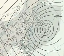 ![]() A surface weather analysis of the nor'easter on March 4 |