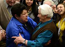 Polish Righteous Among the Nations Czeslawa Zak reunites with one of the people she rescued, Olga Kost, in Israel for the last time, fulfilling one of her life's dreams[14]