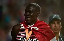 Marco Arop (born September 20, 1998) is a Canadian track and field athlete competing in the middle distance events. Arop is the reigning world champion in the 800 m, winning gold at the 2023 World Athletics Championship, after winning bronze the previous year at the 2022 World Athletics Championships. He was the first Canadian win a world championship in the 800 m. Arop was also the 2019 Pan American Games champion in 800 m. Arop represented Canada at the 2020 Summer Olympics and he currently holds a Canadian national record personal best of 1:42.85[2] in the 800 m.